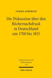 Ulrike Andersch unternimmt eine umfassende Analyse der im 18. Jahrhundert geführten Diskussion über die Frage, ob der Büchernachdruck ohne Zustimmung des Erstverlegers oder Autors rechtmäßig sei. In deren Rahmen gelang es den Zeitgenossen allmählich, eine Theorie eines geistigen Eigentums zu entwickeln. Dafür untersucht die Autorin knapp 500 juristische, philosophische, kameralistische und literarische Quellen und berücksichtigt nicht nur rechtshistorische Fragen, sondern auch buchhandels-, wirtschafts-, sozial-, mentalitäts- und literaturgeschichtliche Aspekte. Hierdurch gelingt es ihr, eine weitere Entwicklungsstufe auf dem Weg zum modernen Urheberrecht herauszuarbeiten, welche bisher bestehende Schwierigkeiten einer befriedigenden Einordnung zahlreicher zeitgenössischer Quellen beseitigt. Damit entwirft sie ein überzeugendes Gesamtbild der Urheberrechtsgeschichte im 18. Jahrhundert.