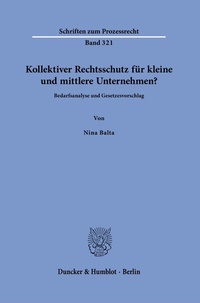 Kleine und mittlere Unternehmen (KMU) sind größeren Unternehmen in gerichtlichen Auseinandersetzungen regelmäßig unterlegen. Das liegt insbesondere an begrenzten finanziellen Ressourcen, geringerer Prozesserfahrung sowie einer häufig einseitigen wirtschaftlichen Abhängigkeit von den konfliktbefangenen Geschäftsbeziehungen. Nicht selten sehen KMU daher von einer gerichtlichen Durchsetzung ihrer Ansprüche ab - auch in Fällen, in denen zahlreiche KMU gleichartig betroffen sind. Das wirft die Frage auf, ob der bislang weitgehend auf den Verbraucherschutz beschränkte kollektive Rechtsschutz um Instrumente für KMU erweitert werden sollte. Die Arbeit geht dieser Fragestellung sowohl aus Sicht der betroffenen KMU als auch unter Berücksichtigung des öffentlichen Interesses an effektiver Rechtsdurchsetzung und Missbrauchsprävention nach. Auf dieser Grundlage wird ein auf KMU zugeschnittener Regelungsvorschlag entwickelt.