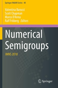 Bernardini, M., Counting numerical semigroups by genus and even gaps via Kunz-coordinate vectors.- Borzì A., Patterns on the numerical duplication.- Bouyalat, B. and El Baghdadi, S., Primality in semigroup rings.- Delgado, M., Conjecture of Wilf: A survey.- Eliahou, S. and Fromentin, J., Gapsets of small multiplicity.- Eto K., Generic toric ideals and row-factorization matrices in numerical semigroups.- Fel Leonig G., Symmetric (not Complete Intersection) Semigroups Generated by Six Elements.- Gimenez P. and Srinivasan H., Syzygies of numerical semigroup rings, a survey through examples.- Gotti F., Irreducibility and factorizations in monoid rings.- Gotti F. and Gotti M., On the molecules of numerical semigroups, Puiseux monoids, and Puiseux algebras.- Karaka? H.I., Arf Numerical Semigroups With Multiplicity 9 and 10.- Kien Do V. and Matsuoka N., Numerical semigroup rings of maximal embedding dimension with determinantal de?ning ideals.- Maugeri N. and Zito G., Embedding dimension of a good semigroup.- Moyano-Fernandez J. J., On multi-index ?ltrations associated to Weierstrass semigroups.- Oneto A. and Tamone G., On the Hilbert function of fourgenerated numerical semigroup rings ?ahin M., Lattice Ideals, Semigroups and Toric Codes.- Spirito D., The number of star operations on numerical semigroups and on related integral domains.- Steinburg N. and Wiegand R., Torsion in tensor products over one-dimensional domains.- Strazzanti F. and Watanabe K., Almost Symmetric Numerical Semigroups with Odd Generators.-Tozzo L., Poincaré series on good semigroup ideals.- Watanabe K., A short proof of Bresinskis Theorem on Gorenstein semigroup rings generated by 4 elements