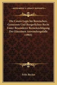 Die Cessio Legis Im Romischen, Gemeinen Und Burgerlichen Recht Unter Besonderer Berucksichtigung Der Einzeinen Anwendungsfalle (1903)