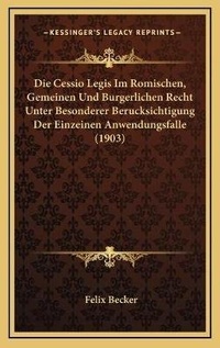 Die Cessio Legis Im Romischen, Gemeinen Und Burgerlichen Recht Unter Besonderer Berucksichtigung Der Einzeinen Anwendungsfalle (1903)