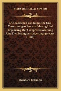 Bild: Die Badischen Landesgesetze Und Verordnungen Zur Ausfuhrung Und Erganzung Der Civilprozessordnung Und Des Zwangsversteigerungsgesetzes (1902) - Kessinger Publishing