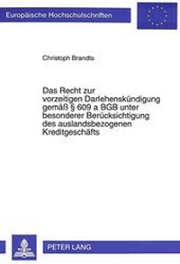 Nach heftiger Diskussion wurde mit 609 a anstelle des 247 ein neues Kündigungsrecht für Darlehensnehmer in das BGB eingefügt. Nach einer Untersuchung des Anwendungsbereichs und der praktischen Relevanz der Neuregelung unterzieht die Arbeit 609 a einer kritischen rechtspolitischen Bewertung. Ein besonderer Schwerpunkt liegt auf der Anwendung der Norm im auslandsbezogenen Kreditgeschäft. Schließlich wird untersucht, ob die im Rahmen der Bewertung gewonnenen Erkenntnisse eine Einschränkung des Anwendungsbereichs der Norm de lege lata rechtfertigen können.
