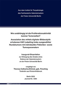 As a core result of this study it was impossible to identify universal associations or correlations between the proliferative activity of tumour cells and the investigated patient- and tumourrelated parameters. Instead, the results turned out to be sporadic and rather tumour type specific. Thus, without considering gender, an association between Ki67-LI and patient age could only be observed for PGA with increasing Ki67-LI with increasing age. Not surprisingly, after stratification of the study population by sex, this increase in Ki67-LI was present only in males, whereas Ki67-LI in females decreased with increasing age. Since PGA occur more frequently in unneutered males and are often associated with hormone-producing testicular tumours, the differences in proliferative activity between the sexes seem rather predictable. In MCT, stratification of the study population by sex led to increasing Ki67-LI with increasing age only in females. However, for this type of tumour, more advanced malignant progression in older animals appears to be a likely cause for this observation. Additionally to age, effects of sex and castration on proliferative activity were investigated. Significant differences in proliferative activity were observed between castrated and intact males with PLA and females with MCT. For MCT, few studies exist claiming that castration plays a role in development and proliferation for that type of tumour, however, the complex hormonal relationships remain unclear so far. Further patient-related parameters investigated in this study were the body weight or size of the dogs but no associations with the Ki67-LI were observed here. Initially, subdivision of the study population by genetic background was sought but proved not to be possible due to small group sizes. This may have prevented the detection of potential associations of Ki67-LI with breed of the patient. Another focus of the study was on the association of tumour characteristics with the Ki67-LI. Here, a significant increase of the Ki67-LI with increasing tumour size was identified in MCT. This observation corresponds to characteristic of this and other malignant tumour types also from humans to undergo malignant progression with accumulation of mutations that can drive cell division. Conversely, Ki67-LI decreased in PGA with increasing tumour size. As a possible cause for this observation increasing hypoxia with increasing tumour size was hypothesized. Finally, possible effects of tumour location on the Ki67-LI were also investigated, which, however, were observed exclusively in TRI. Apart from the observations mentioned, no further associations between patient- or tumour-related parameters and Ki67-LI were found in the selected tumour types.