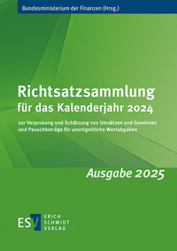 Das Bundesministerium der Finanzen hat bundeseinheitliche Richtsätze zur Verprobung und Schätzung von Umsätzen und Gewinnen für das Kalenderjahr 2024 sowie zu den Pauschbeträgen für unentgeltliche Wertabgaben für die Kalenderjahre 2024 und 2025 herausgegeben. Diese Broschüre enthält die amtliche Richtsatzsammlung in übersichtlicher und praxisgerechter Form.