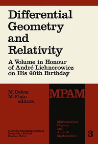 Thirty Years of Activity in the Renovation of Mathematical Education.- I-Differential Geometry.- The Scalar Curvature.- On Automorphisms of Spaces of Nonpositive Curvature with Finite Volume.- Harmonic Functions on Groups.- Some Relations Between Volume, Injectivity Radius, and Convexity Radius in Riemannian Manifolds.- Heat Equation, Proportionality Principle, and Volume of Fundamental Domains.- Some Remarks on the Fundamental Kernels of a Pseudo-Riemannian Manifold.- Geodesic Balls in Riemannian Product Manifolds.- Twisted Exotism.- On Lie Transformation Groups and the Covariance of Differential Operators.- Geometrical Interpretations of Scalar Curvature and Regularity of Conformal Homeomorphisms.- Pfaffian Systems and Transverse Differential Geometry.- The Curvature Class of an Almost-Complex Manifold.- Pseudogroups and Linear Connections on a Banach Fibre Bundle.- Mobility in Categories and Metric Spaces.- The Tension Field of Maps of Riemannian Manifolds.- II-Mathematical Physics.- Conformal Invariance in Physics.- Quantum Mechanics of Predictive Poincaré Invariant Systems.- Scalar Time Functions: Differentiability.- The Problem of Constraints in General Relativity: Solution of the Lichnerowicz Equation.- Hamiltonian Construction of Predictive Systems.- Symplectic Manifolds, Dynamical Groups, and Hamiltonian Mechanics.- Any Space-Time Has a Plane Wave as a Limit.- Curvature Invariants, Characteristic Classes, and the Petrov Classification of Space-Times.- Collected Works of A. Lichnerowicz.- Index of Names.