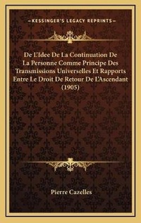 De L'Idee De La Continuation De La Personne Comme Principe Des Transmissions Universelles Et Rapports Entre Le Droit De Retour De L'Ascendant (1905)