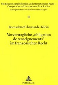 Aus dem Inhalt: Französisches Recht - Ansprüche des getäuschten oder irregeführten Vertragspartners - Vorvertragliche Informationpflichten.