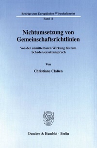 Die Autorin befaßt sich in der vorliegenden Veröffentlichung mit den Problemen der Nichtumsetzung von Gemeinschaftsrichtlinien. Besonderes Augenmerk wurde dabei auf eine möglichst umfassende Würdigung der Rechtsprechung und der teilweise kontroversen Literaturauffassungen zu diesem immer noch umstrittenen Thema gelegt.Im ersten Abschnitt stellt Christiane Claßen die Wesenszüge der Richtlinie dar. Sodann werden die einzelnen Folgen der Nichtumsetzung von Richtlinien aufgezeigt. Dabei wird zunächst auf das Entstehen der unmittelbaren Wirkung von Richtlinien eingegangen und anschließend der vom Europäischen Gerichtshof entwickelte Schadensersatzanspruch des einzelnen gegen den säumigen Mitgliedstaat untersucht.Die Autorin unterbreitet einen dogmatisch fundierten Lösungsvorschlag für die Begründung des bereits vom Europäischen Gerichtshof anerkannten Schadensersatzanspruchs bei Nichtumsetzung von Richtlinien.Als Ergebnis der Untersuchung ist der Anspruch auf Schadensersatz nicht lediglich aus der Gemeinschaftsrechtsordnung abzuleiten, sondern läßt sich in gleichem Maße auf die im Grundgesetz verankerten Grundsätze der freiheitlich-demokratischen Grundordnung zurückführen.
