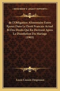 de L'Obligation Alimentaire Entre Epoux Dans Le Droit Francais Actuel Et Des Droits Qui En Derivent Apres La Dissolution Du Mariage (1905)