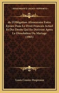 Bild: de L'Obligation Alimentaire Entre Epoux Dans Le Droit Francais Actuel Et Des Droits Qui En Derivent Apres La Dissolution Du Mariage (1905) - Kessinger Publishing