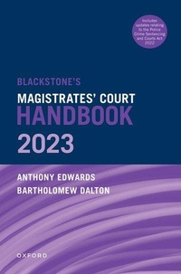 Blackstone's Magistrates' Court Handbook's easy-to-use pocket-sized format facilitates quick reading and instant decision-making. Tables, flow-charts, and a clear system of icons aid comprehension and speedy navigation. Cross-referencing to Blackstone's Criminal Practice 2023 provides you with easy access to in-depth commentary.
