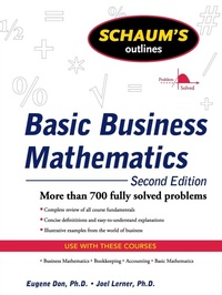 Schaum's Outline of Basic Business Mathematics, 2ed Review of Arithmetic. Ratio, Proportion, and Percent. Payroll. Depreciation. Interest and Discount. Annuities and Their Applications. Stocks and Bonds. Buying. Selling. Insurance. Introduction to Statistics.