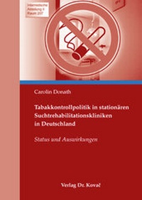 Ein gesellschaftlich hoch aktuelles Thema - Rauchverbote und Einschränkungen in der Öffentlichkeit - werden von der Autorin für den Bereich Gesundheitswesen analysiert. Ein Konzept der Tabakkontrollpolitik, welches sowohl Regeln und Konsequenzen zur Einschränkung des Tabakkonsums aber auch Hilfen und Unterstützung für Raucher bietet, wird von der Verfasserin vorgestellt. Die Autorin fasst die rechtlichen Grundlagen für eine Regulation des Tabakkonsums zusammen und ordnet die Situation in Deutschland mittels eines internationalen Vergleichs innerhalb Europas aber auch innerhalb der entwickelten Industrieländer weltweit ein. Es wird deutlich, dass in Deutschland starke Entwicklungsdefizite in Bezug auf Nichtraucherschutz und Förderung des Nichtrauchens bestehen. Ergebnisse zur Wirksamkeit von Tabakkontrollpolitik in den Bereichen Arbeitsplatz und Schule, öffentliche Gebäude und positive Erfahrungen anderer Länder werden vorgestellt. Im Buch wird die Zielgruppe der alkoholabhängigen Raucher als besonders gefährdete Untergruppe der Raucher betrachtet. Carolin Donath überprüft in einer umfangreichen Studie aus dem Jahr 2006 mit 40 teilnehmenden Kliniken in Deutschland, welche Auswirkungen eine strengere Klinikpolitik auf das Rauchverhalten von Patienten hat. Als Hauptergebnis zeigt sich, dass umfassend entwickelte Kliniken, die Rauchen mittels Regeln und Konsequenzen regulieren, Tabakentwöhnungsangebote anbieten und speziell geschultes Personal auf dem Gebiet haben, erfolgreicher sind. Im Rahmen der Studie wurden 1403 Patienten untersucht. Das Werk zeigt die hohe Gefährdung für deutsche Alkoholabhängige auf, deren Raucheranteil gegenüber der Normalbevölkerung nahezu dreifach erhöht ist. Die Patienten sind außerdem psychisch nicht nur stärker belastet als die Normalbevölkerung sondern auch als nichtrauchende alkoholabhängige Mitpatienten. Die Ergebnisse der Untersuchung beruhen auf modernsten statistischen Analysen (Latent-Class- Clusteranalyse und Hierarchisch-Lineares-Modellieren), die für den Leser nachvollziehbar vorgestellt werden. Aus den Ergebnissen werden bedeutsame und verständliche Schlussfolgerungen für die Praxis, insbesondere die Politik, aber auch für die Forschung gezogen. Schließlich gibt das Buch auch für den Praktiker und für interessierte Kliniken Hinweise für eine erfolgreiche Implementierung von Tabakkontrollpolitik. Besonders hilfreich ist in diesem Zusammenhang der im Anhang publizierte Leitfaden für Einrichtungen des Gesundheitswesens, mit deren Hilfe die bestehende Tabakpolitik optimiert und verändert werden kann und der auf typische Fehlerquellen bei der Tabakpolitikentwicklung hinweist. Ein von der Autorin neu entwickelter, erprobter und einfach einzusetzender Fragebogen zur Erfassung des Entwicklungsstands der Tabakkontrollpolitik in der eigenen Einrichtung liegt einsatzbereit vor und ist im Anhang publiziert.