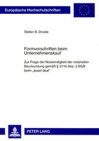 Die Frage der Formbedürftigkeit von Unternehmenskaufverträgen stellt sich aus Sicht der Praxis in vielerlei Fällen. Eine nicht zu vernachlässigende Rolle spielt § 311b Abs. 3 BGB, der immer dann besonders zu beachten ist, wenn der Unternehmenskaufvertrag nicht schon aufgrund anderweitiger Formvorschriften notariell zu beurkunden ist. Aufgrund der in § 125 BGB konstatierten Nichtigkeitsfolge bei Nichtbeachtung von Formvorschriften ist es unverständlich, dass eine grundlegende Klärung des Anwendungsbereiches bisher ausgeblieben ist. In praxi geht man über diese Unsicherheit mit der gut gemeinten Empfehlung hinweg, Unternehmenskaufverträge in jedem Fall vorsorglich beurkunden zu lassen. Der Autor hat sich mit dieser Arbeit das Ziel gesetzt, den Tatbestand und die Rechtsfolge des § 311b Abs. 3 BGB einer grundlegenden Klärung zuzuführen und die gewonnenen Ergebnisse auf die Beurkundungspflicht von Unternehmenskaufverträgen zu übertragen.