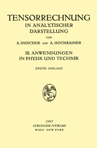 Dritter Teil Anwendungen in Physik und Technik.- § 39. Mechanik des Massenpunktes.- § 40. Mechanik des Punktsystems.- § 41. Mechanik des starren Körpers.- § 42. Spezielle Bewegungen.- § 43. Elastizitätstheorie I.- § 44. Elastizitätstheorie II.- § 45. Mechanik der Flüssigkeiten I.- § 46. Mechanik der Flüssigkeiten II (Hydrodynamik).- § 47. Vektorielle Doppelfelder I.- § 48. Vektorielle Doppelfelder II.- § 49. Das Wärmefeld.- § 50. Das elektrostatische Feld.- § 51. Das magnetische Feld.- § 52. Das elektrische Feld.- § 53. Das elektromagnetische Feld.- § 54. Quasistationäre elektromagnetische Vorgänge.- § 55. Schnell veränderliche elektromagnetische Felder.- § 56. Spezielle Relativitätstheorie I.- § 57. Spezielle Relativitätstheorie II.- § 58. Allgemeine Relativitätstheorie.- § 59. Spezielle Lösungen der Gravitationsgleichungen.- Anhang. Lösungen der Aufgaben.