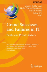 This book constitutes the refereed proceedings of the IFIP WG 8.6 International Working Conference on Transfer and Diffusion of IT, TDIT 2013, held in Bangalore, India, in June 2013. The 35 revised full papers presented together with an invited paper, 12 short papers and 3 poster papers were carefully reviewed and selected from 65 submissions. The full papers are organized in the following topical sections: IS success and failure; studies of IT adoption; software development; IT in the public sector; and theory and methods.