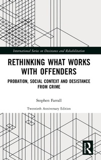 Preface, Shadd Maruna and Fergus McNeill, Part 1 Introduction, 1 Probation, social context and desistance from crime: introducing the agenda, 2 Realism, criminal careers and complexity, 3 The Study, Part 2 Probation, motivation and social contexts, 4 Defining 'success', 5 The focus of probation, 6 Resolving obstacles: the role of probation supervision, 7 Motivation and probation, 8 Probation work: content and context, 9 Motivation, changing contexts and probation supervision, Part 3 Persistance and desistance, 10 Desistance, change and probation supervision, 11 The factors associated with offending, Part 4 Conclusions, 12 Probation, social context and desistance from crime: developing the agenda Index, 13 Rethinking ... 20 years later: What Happened Next?, 14 Critical International Reflections on Rethinking What Works with Offenders by Jose Cid, University of Barcelona, Spain, Martine Herzog-Evans, University of Rheims, France, Isabelle Fortine-Dufou, Laval University, Canada and Mark Halsey, Flinders University, Melbourne, Australia.