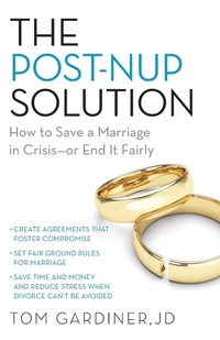 Having trouble in your marriage? This book is for you. Tom Gardiner, a Chicago lawyer, explains how post-nuptial agreements can address marital problems effectively. Unlike counseling that often is no more than a temporary fix, this book talks about agreements that will result in long-term change. If your spouse drinks too much, for instance, you both agree in a legally binding document about the changes that need to occur-and the consequences if they don't. There is another huge advantage to post-nups. If the behavior is not changed and divorce is triggered, the terms are set when the parties both seek to save the marriage-not when they're going through an acrimonious break-up. These terms are usually reasonable and fair-who gets the kids and when, a fair amount of alimony for a fair term, division of the property-all because the spouses are seeking a solution at the time. This book covers all of the human frailties that can cause problems in a marriage: financial problems, drinking, drug use, cheating, stepchildren, in-law problems, inheritance, religious issues, and so on. It is a book not just for couples, but for therapists, religious leaders, and others who seek to make marriages stronger and divorces civilized and fair.