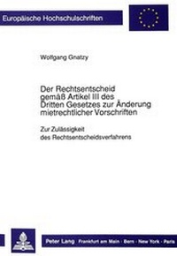 «Das Verdienst der Arbeit von Gnatzy liegt in der genauen Herausarbeitung der formellen und materiellen Voraussetzungen für die Durchführung eines Rechtsentscheidsverfahrens, so daß es künftig nicht mehr zu unzulässigen Vorlagen zu kommen braucht.» (Dr. Siegbert Lammel, Zeitschrift für Miet- und Raumrecht)