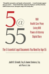"Many people discover too late that they need some essential legal documents to deal with common health and end of life issues. Failing to prepare these documents ahead of time can create major legal headaches that often require expensive trips to court to resolve. Written by expert attorneys, 5@55 is a slim, easy-to-read guide to the five most important legal documents you should have by age 55: Healthcare Advance Directive, Living Will, Power of Attorney, Last Will and Testament, and Authorization to Access Electronic Records and Media Sites. These are the documents that everyone says theyll get to eventually. But eventually all too often turns to never. Setting a deadline of age 55 to draft these essential documents ensures that theyll be ready before you need themand avoid nasty and costly surprises. With full descriptions of each document, explanations of why you need it, and sample documents you can adapt to your own needs, 5@55 is a must-have manual for the second half of life."