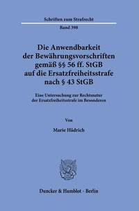 Die Aussetzung der Vollstreckung der Ersatzfreiheitsstrafe i.S.v. § 43 StGB zur Bewährung gem. §§ 56 ff. StGB wird in der Praxis anders als bei Freiheitsstrafen i.S.v. § 38 StGB überwiegend abgelehnt. Dieses Ergebnis verwundert mit Blick auf die ebenfalls vorherrschende Meinung, dass es sich bei der Ersatzfreiheitsstrafe um eine echte (Freiheits )Strafe handelt. Kernstück der Arbeit bildet deshalb die Untersuchung der Rechtsnatur der Ersatzfreiheitsstrafe mittels der juristischen Auslegungsmethoden. Daneben geht Marie Hädrich auf die sanktions- sowie vollstreckungsrechtlichen Probleme im Zusammenhang mit der Verhängung und Vollstreckung der Geldstrafe i.S.v. § 40 StGB vor allem bei wirtschaftlich schwachen Straftätern ein. Sie kommt zu dem Ergebnis, dass es sich bei der Ersatzfreiheitsstrafe um eine echte Freiheitsstrafe handelt, deren Vollstreckung gem. §§ 56 ff. StGB bereits de lege lata zur Bewährung ausgesetzt werden kann, und unterbreitet einen eigenen Handlungsvorschlag.