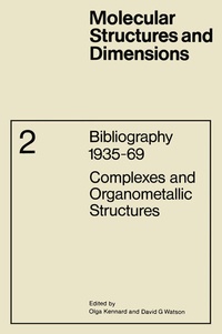 This classified bibliography of organic and organametallic crystal structures covers the period 1935-1969 and provides references to over 4,000 compounds whose structures were analysed by X-ray or neutron-diffraction methods. Volume 1 deals with generat organic structures and Volume 2 with complexes, organametals and organo metalloids. The bibliography is the first of a new series of publications "Molecular Structures and Dimensions" prepared at the Crystallo graphic Data Centre, University Chemica1 Laboratory, Cambridge. The Centre has been supported since 1965 by the Office for Scientific and Technical Information as part of the British contribution to international data activities. The main objective of the Centre is to assemble a computer-based File containing both bibliographic information and numerical data abstracted from the Iiterature and relevant to molecular and crystal structures, as obtained by diffraction methods. The File is designed to permit the checking of published numerical values, particularly interatomic distances and bond angles and to present published results in a variety of new ways. Contents of the File will be made available through the series "Molecular Structures and Dimensions" and also by the provision of data on magnetic . tapes or discs. At present the numerical data relating to molecular dimensions are being checked and will be published, at a later date, as further volumes in this series and also as magnetic tapes. The File is being extended to cover electron diffraction in the gas phase.