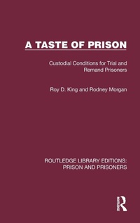 Originally published in 1976, A Taste of Prison deals with a very sensitive area of concern in the system of trial and imprisonment in Britain at the time. It describes the conditions at Winchester Prison and Winchester Remand Centre for both adults and young persons who were held in custody before trial or who were awaiting sentence. Despite the fact that many of these persons would not subsequently be sent to prison by the courts, the conditions they experienced were in many respects no better and in some respects worse than those for persons sentenced to imprisonment. Moreover, as this study shows, the special provisions for these persons embodied in the Prison Rules and Standing Orders of the Prison Department often meant little in practice - either because they remained unaware of their rights or because they were unable to take them up for various reasons.