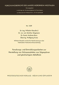 1. Einleitung - Problemstellung.- 2. Rohstoffwirtschaftliche Gesichtspunkte.- 3. Kennzeichnung der Eigenart von Sägespänen als Rohstoff zur Spanplattenherstellung.- 4. Vergleich der Festigkeitsausbildung von Sägespanplatten und Schneidspanplatten.- 5. Versuchsarbeiten zur Herstellung mittelschwerer Holzspanplatten aus Sägespänen und Schneidspänen nach dem Flachpreßverfahren.- 6. Versuchsarbeiten zur Herstellung von leichten, dicken Holzspanplatten aus Sägespänen und Schneidspänen nach dem Flachpreßverfahren.- 7. Verwendung von Sägespänen als Rohstoff für die Herstellung von Strangpreßplatten.- 8. Anwendungstechnische Versuche zur Feststellung der Eignung von dicken Platten als Wandelemente.- 9. Zusammenfassung.- 10. Literaturverzeichnis.- Anhang: Tabellen 1-8.