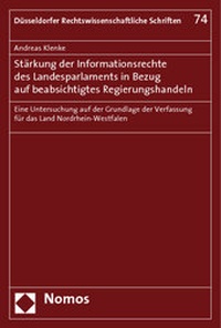 Der Bedeutungsverlust der Landesparlamente gegenüber dem Bund, aber auch gegenüber den Landesregierungen wird vielfach beschrieben. Ein Ansatzpunkt für eine Stärkung des Gewichts der Landtage ist die Verbesserung ihres Informationsstandes, insbesondere im Hinblick auf beabsichtigtes Regierungshandeln. Die Arbeit untersucht anhand der Verfassung für das Land Nordrhein-Westfalen, wie ein Recht des Landesparlaments auf frühzeitige Unterrichtung über Vorhaben der Landesregierung verfassungsrechtlich realisiert werden könnte. Diskutiert wird namentlich die Umsetzung eines entsprechenden Informationsrechts durch ein einfaches Gesetz, eine Vereinbarung zwischen Parlament und Regierung sowie eine Änderung der Verfassung. Untersucht werden jeweils auch die Möglichkeiten der Beteiligten, Rechtsschutz in Anspruch zu nehmen.