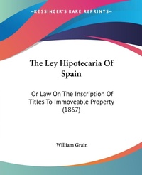 The Ley Hipotecaria of Spain, also known as the Law on the Inscription of Titles to Immovable Property, is a legal text that governs the registration of property titles in Spain. This book, written by William Grain and first published in 1867, provides a comprehensive overview of the Ley Hipotecaria and its various provisions. The text covers topics such as the registration of property titles, the rights and obligations of property owners, the role of notaries and registrars in the registration process, and the legal remedies available to property owners in case of disputes. The book also includes a detailed analysis of the historical and cultural context in which the Ley Hipotecaria was developed, providing readers with a deeper understanding of the legal and social factors that have shaped property law in Spain. Overall, The Ley Hipotecaria of Spain is an essential resource for anyone interested in understanding the intricacies of property law in Spain, as well as the broader legal and cultural context in which it operates.Deeds And Preventive Annotations Affecting The Same; Decrees Respecting Legal Incapacity, Absent Parties, Etc., And Also Provisions For Giving Effect In Spain To Deeds Executed In Foreign Countries And To The Judgments Of Foreign Courts.This scarce antiquarian book is a facsimile reprint of the old original and may contain some imperfections such as library marks and notations. Because we believe this work is culturally important, we have made it available as part of our commitment for protecting, preserving, and promoting the world's literature in affordable, high quality, modern editions, that are true to their original work.