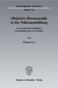 Inhaltsübersicht: Einleitung - A. Der Fachbereich Polizei als Institution zur Ausbildung von Polizeibeamten - B. Einübung in die Methode der Sequenzanalyse: Erste Phase - Modellfälle - Zweite Phase: Einübung in die Intervention (Gesprächsführung) - Dritte Phase: Abschlussstudium und Staatsexamen - Ergebnis des schriftlichen Staatsexamens - Projektarbeit - Mündliche Staatsexamensprüfung - C. Materialanalysen: Analysen der Notrufprotokolle: Analytisch-diagnostische Leistung des Normalfallmodells - Datenbasis - Aufbau der Darstellung - Fallbeispiele - D. Rezeptionsvergleich: Vollständiger Rezeptionsvergleich eines Falles - Ausgangsfall für die studentische Fallrezeption - Studentische Fallrezeption - Bewertung der Rezeptionsanalyse: Formale versus materiale Gerechtigkeit - Auswertung von Schlüsselstellen - Fallbeispiele - Erfahrungen mit Gruppenarbeit - Diagnostisch-pädagogische Bedeutung der Gruppenanalysen - E. Rollenspiele: Rollenspielanalysen - Analyse I-VII - Resümee - F. Wirksamkeit der Methode: Methodische Sensibilisierung für die Berufspraxis - Berufliches Handeln I - Vorbemerkung zum Fall Scheler - Der Fall Scheler - Berufliches Handeln II: Vorbemerkung zur Einführung der Sequenzanalyse in die Thüringer Verhandlungsgruppe - Einführung der Sequenzanalyse in die Thüringer Verhandlungsgruppe - G. Umsetzung der Methode auf der institutionellen Ebene: Curricularisierung - Durchsetzung zur Prüfungsnormalität - Die Sequenzanalyse als Basismethode für eine interdisziplinär ausgerichtete Ausbildung I - Die Sequenzanalyse als Basismethode für eine interdisziplinär ausgerichtete Ausbildung II - H. Konsequenzen für eine klinische Soziologie als Scharnierstelle zwischen Theorie und Praxis: Empfehlungen für eine praxisorientierte Ausbildung von Soziologen im Berufsfeld Dozent für Soziologie im Polizeibereich - Anforderungsprofil für einen in der Polizeiausbildung lehrenden Soziologen - I. Schlussbetrachtung - Anhang - Literatur, Sachverzeichnis