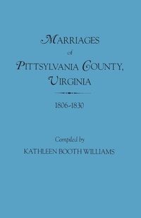 This book follows a book of a similar title by Catherine Knorr which covers the period from 1767 to 1805. The Williams book, offered here in reprint, extends Mrs. Knorr's period of coverage by a full twenty-five years and contains some 2,500 marriage records which, with parents, sureties, and witnesses, refer to a total of 7,000 persons. The sources from which this material derives include original marriage bonds, ministers' returns, and the marriage register at Chatham, Virginia, which in each case was checked for accuracy against the bonds and returns. The marriages are arranged throughout in alphabetical order by the surname of the groom, and each entry gives, besides the name of the bride, the date of the bond, the date of the marriage, the names of sureties and persons giving consent (usually fathers of brides), and the name of the person performing the marriage ceremony. Two indexes, one to brides and the other to sureties, furnish the researcher with a handy key to the text.