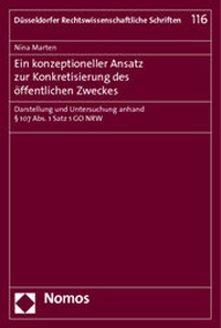 Ausgehend von dem gemeinderechtlichen Referenzbereich entwickelt die Autorin einen konzeptionellen Ansatz zur Beschreibung des Begriffs, der - ausgehend von dem Wortsinn - allgemeingültige Parameter zur Bestimmung des Zweckbegriffs benennt und dadurch einen variablen, nicht nur für das kommunale Wirtschaftsrecht brauchbaren Maßstab definiert. Hierzu werden die einschlägigen verfassungs- und einfachrechtlichen Vorgaben insbesondere unter dem Blickwinkel eines grundrechtlich geforderten Konkurrenzschutzes ausgewertet und schließlich die Frage nach der verfassungsrechtlich gebotenen Kontrolldichte sorgfältig beleuchtet.