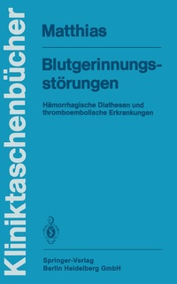 I. Physiologie der Blutgerinnung und Hämostase.- II. Thrombose.- III. Diagnostik der Gerinnungsstörungen.- A. Hämorrhagische Diathesen.- IV. Einleitung.- V. Umsatzstörungen.- VI. Thrombozytäre hämorrhagische Diathesen.- VII. Operation und Blutung.- B. Thromboembolische Erkrankungen des venösen und arteriellen Gefäßsystems.- VIII. Indikationen für die Behandlung mit Antithrombotica und Fibrinolytika - eine Übersicht.- IX. Koronarthrombose und Herzinfarkt.- X. Fibrinolyse-und Langzeittherapie im arteriellen Gefäßsystem.- XI. Zerebrale Durchblutungsstörungen.- XII. Gerinnungsfaktorenmängel mit Thromboseneigung.- C. Gerinnungsaktive Substanzen.- XIII. Nebenwirkungen, Blutungskomplikationen, Kontraindikationen und Toleranzänderungen von Antikoagulantien, Aggregationshemmern und Fibrinolytika.- XIV. Wirkungsweise und Eigenschaften einiger gerinnungsaktiver Medikamente und deren Dosierung.