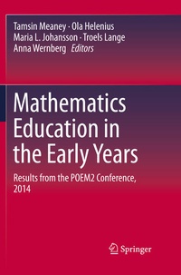 Introduction.- An historical overview of early education policy and pedagogy: Global perspectives and particular examples.- Very Young Children.- Playing with patterns - Lessons learned from a learning study with toddlers.- Creating a mathematics environment.- Learning and teaching.- What is the difference? Young children learning mathematics through problem solving.- Children´s Play as a Starting Point for Teaching Mathematics in Preschool.- Opportunities to learn mathematics while playing traditional dice games.- Poor mathematics performance of South African students points towards poor mathematics foundation of young children.- Mathematical processes.- What is Play As a mathematical activity for preschool children?.- Mathematical reasoning at pre-school level.- Mathematically creative processes in early childhood.- Mathematical conversations in kindergarten.- Adaptivity as an developmental aspect of mathematical thinking in the early years.- Number understandings.- The Development of the Competence of Counting in a Child between three and six years with a specific Language Impairment.- Development of a flexible understanding of place value.- The role of conceptual subitising in the development of foundational number sense.- Mathematical content understandings.- "I spy with my little eye" . different components of a concept of length.- The Significance of the Equal Sign in The Development Of Early Algebraic Reasoning.- Technology in early childhood.- Tablets in Kindergarten - Seriously?!.- Preschool children's learning to think mathematically using an interactive table.- Dragon box and algebraic thinking.- Transitions.- The interactional niche in the development of mathematical thinking (NMT) in the familial context.- Investigating the potential of home learning environments for early mathematics learning.- Families and educators working together to assist young children notice, explore and discuss mathematics.- Mathematical understanding in the transition from kindergarten to primary school.- Preschool Teachers.- How to promote preschool-teachers' mathematical awareness.- Reflection- An opportunity to connect different aspects of professional competencies in mathematics education.- From instruction to construction: Fostering preservice teachers' "mathematical awareness".- Preschool teachers' operationalising of mathematical goals.- Post-script.