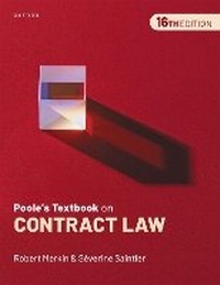 A student classic: clear, comprehensive, contextual. The immensely popular Poole's Textbook on Contract Law has been guiding students through contract law for over 20 years. The law of contract is placed within its commercial context, and students are provided with a detailed yet accessible treatment of all the key areas of contract law.