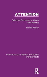 Following the publication of Broadbent's Perception and Communication in 1958, work on attention had begun to pour from an ever increasing number of laboratories. This book is dedicated to summarising what we knew, and attempts to survey the behavioural research in vision and hearing which throw light on how we share and direct attention, what are the limits of attention, to make some general methodological recommendations, to review current theories of the time, and to provide a guide to the relevant physiological work. As far as possible, work on memory has been omitted. A bibliography of the major work to the spring of 1969 is included.