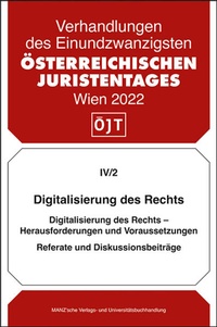 Beim 21. Österreichischen Juristentag 2022 in Wien kamen Juristinnen und Juristen aller Professionen zur fächerübergreifenden Erörterung grundsätzlicher aber auch konkreter Fragen im Zusammenhang mit aktuellen Entwicklungen in Rechtspolitik, Gesetzgebung und Rechtsprechung zusammen. Die Ergebnisse dieser Diskussionen sowie der Tagungsband zur Eröffnungs- und Schlusssitzung liegen jetzt in Buchform vor!