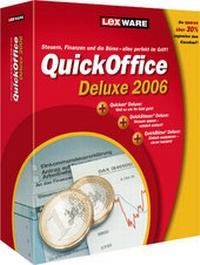 QuickOffice Deluxe 2006 ist die ideale Softwarelösung für alle Aufgaben rund um Ihre Steuern und privaten Finanzen. Sie erhalten gleich drei Bestseller aus dem Hause Lexware, die Ihre Finanzen so richtig auf Zack bringen - und das zu einem ausgesprochenen Spar-Preis. Ihre gesamten Finanzen und Bankgeschäfte verwalten Sie mit Quicken Deluxe sicher und bequem von zu Hause aus. QuickSteuer Deluxe hilft Ihnen mit Tipps und Tricks beim Steuernsparen und ist dazu spielend einfach zu bedienen. Wie Sie nicht nur Ihre gesparten Steuergelder an der Börse gewinnbringend anlegen, erfahren Sie anhand von QuickBörse Deluxe. Von besonderem Vorteil für Sie: Alle drei Komponenten ergänzen sich wie ein eingespieltes Team. Ihre steuerlich relevanten Finanzdaten aus Quicken stehen Ihnen in QuickSteuer auf Knopfdruck zur Verfügung, so ersparen Sie sich das lästige Suchen der Versicherungspolicen und viele andere Eingaben. Mit der umfangreichen Wertpapieranalyse von QuickBörse entwickeln und setzen Sie Ihre persönliche Gewinn- und Risikostrategie um. Ihre gesamte finanzielle Situation unter Berücksichtigung aller Aspekte stellt Ihnen dann Quicken dar. LEISTUNGSUMFANG: Einfach und komfortabel Steuern sparen mit QuickSteuer Deluxe 2006 > Video-gestütztes Interview 'Mein QuickSteuer' für den einfachen Programmeinstieg - das Programm wird an die individuelle Steuersituation angepasst > Druck der Steuererklärung in die amtlichen Formulare oder auf Blankopapier inkl. Unterstützung von DIN A3- und Duplex-Druck > ELSTER - Elektronische Steuererklärung inkl. digitaler Signatur > Prüfung auf Korrektheit und ungenutzte Sparmöglichkeiten > Formulare, Anlagen und Anträge für alle Steuerfälle > Berücksichtigung aller Steueränderungen für 2005 > Zugang zum Steuerportal im Internet mit vielen aktuellen Informationen rund um das Thema Steuern > Verständlicher Steuerratgeber mit 400 Seiten > Antrag auf Lohnsteuerermäßigung 2006 > Steuertacho für die permanente Anzeige der aktuellen Steuererstattung/-nachzahlung > Gewerbe- und Umsatzsteuererklärung 2005 > Einnahmen-Überschussrechner für 2005 und 2006 inkl. Umsatzsteuer-Voranmeldung und Kassenbuchfunktionalität > Reisekosten-Rechner für die steuerliche Dienstreiseabrechnung 2005 mit elektronischem Fahrtenbuch Finanzmanagement mit Quicken Deluxe 2006 > Finanz- und Vermögensplanung > Verwaltung von Einnahmen und Ausgaben > Budgetkontrolle und Überwachung von Sparzielen > Übersichtliche Berichte und Analysen > Online Banking via T-Online-Decoder X.0 HBCI 2.X > Überweisung, Lastschriften, Daueraufträge und Terminüberweisungen - online erledigen > Download der Kontoauszüge - d.h. sämtliche Einnahmen und Ausgaben werden automatisch in Quicken eingespielt > Schneller und komfortabler Online-Abgleich > Spar-Zentrale: deckt jedes Sparpotenzial auf > Internet-Banking: direkter Zugang zum Angebot Ihrer Bank > Altersvorsorge mit allen neuen Gesetzen Analyse und Verwaltung von Wertpapieren mit QuickBörse Deluxe 2006 > Risikomanagement > Alle Kauf- und Verkaufsignale in übersichtlicher Balkenform > Wertpapierdatenabruf über Handy > Chartanalyse mit automatischem Kauf- und Verkaufssystem > Chartvergleich durch Überlagerung beliebig vieler Aktienkurse > Wertpapierfilter zur Suche der aussichtsreichsten Papiere > On