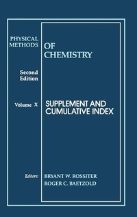 Bryant W. Rossiter is the editor of Physical Methods of Chemistry, 2nd Edition, Volume 10, Supplement and Cumulative Index, 2nd Edition, published by Wiley. Roger C. Baetzold is the editor of Physical Methods of Chemistry, 2nd Edition, Volume 10, Supplement and Cumulative Index, 2nd Edition, published by Wiley.