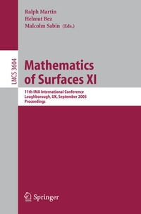 This volume collects the papers accepted for presentation at the 11th IMA Conference on the Mathematics of Surfaces, held at Loughborough University, 5th-7th September 2005. As with all earlier conferences in the series, contri- tors to this volume comefrom manycountries. The paperspresented herere?ect the interest in a subject of relevance to mathematics, engineering,and computer science, especially in domains such as computer-aided design, computer vision, and computer graphics. The papers in the present volume include eight invited papers, as well as a larger number of submitted papers. They cover a range of ideas from - derlying theoretical tools to industrial and medical uses of surfaces.