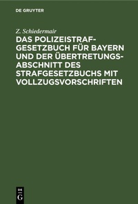Frontmatter -- Vorwort -- Inhaltsübersicht -- Übersicht der Abkürzungen -- I. Teil. Polizeistrafgesetzbuch für Bayern -- II. Teil. Die Übertretungen des Strafgesetzbuchs -- III. Teil. Übersicht der zrrm Polizeistrafgesetzbuch und zu den Übertretungen des Strafgesetzbuchs erlassenen Polizei- Verordnungen und Polizeivorschristen der Ministerien -- IV. Teil. Vollzugsvorschriften zum Polizeistrafgesetzbuch und zum Strafgesetzbuch -- Sachregis