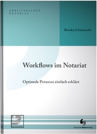 Die Neuerscheinung „Workflows im Notariat" widmet sich daher der Optimierung von Arbeitsprozessen im Notariat und dient als Hilfestellung bei der Definition, Überarbeitung und Umsetzung von verschiedenen Workflows. Die Autorin bietet zahlreiche Arbeitshilfen sowie Lösungsvorschläge an und gibt Tipps zur optimalen Organisation eines modernen und digitalen Notariats.
