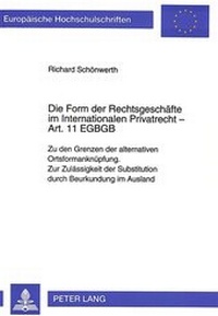 Aus dem Inhalt: Die Anknüpfung der Form der Rechtsgeschäfte im internationalen Privatrecht - Wurzeln und historische Entwicklung der Regel «locus regit actum» - Rechtfertigung der Regel in der heutigen Lehre - Die Neukodifikation des EGBGB vom 01.09.1986 - Grenzen der alternativen Anknüpfung - Die Substitutionsproblematik.