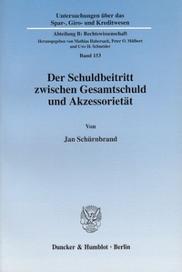 Inhaltsübersicht: Einleitung - 1. Teil: Systematische Grundlegung: Einordnung des Schuldbeitritts in das System des Schuldrechts - Der Schuldbeitritt zwischen Sicherungs- und Übernahmezweck - 2. Teil: Das auf den Schuldbeitritt anwendbare Recht: Zustandekommen des Vertrages: Formfragen und Widerrufsrechte - Inhalt und Weiterentwicklung der Schuld: Einwendungen und Einreden des Beitrittsschuldners - Rechtsfolgen einer Abtretung: Anwendbarkeit von § 401 BGB - Sonderfragen beim Regreß - Insolvenz des Erstschuldners - Zusammenfassung der Ergebnisse des 2. Teils - 3. Teil: Modell einer harmonischen Abgrenzung von Mitvertragspartnerschaft, Bürgschaft und Schuldbeitritt: Gegenseitiger Vertrag oder bloße Mithaftung - Abgrenzung zwischen Bürgschaft und Schuldbeitritt - Zusammenfassung - Literaturverzeichnis, Sachregister