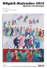 "Der Mai ist der Mozart des Kalenders." Dieser Aphorismus von HERMANN ROSENKRANZ und eine Zeichnung von INGE KNORR zieren das Titelblatt des neuen, im letzten Jahr so erfolgreichen APHORISMENKALENDERS 2013. "Der DAphA-Kalender-Premiere im vorigen Jahr haben wir ein Begleitwort mitgegeben, das auch Skepsis formulierte angesichts so manch anderer Kalender mit ihrer erbaulichen Lebensweisheit. Der große Erfolg hat uns nicht nur eines Besseren belehrt, er hat uns auch ermutigt, das Vorhaben weiterzuführen.Wieder haben wir uns nach Kräften bemüht, aus den Einsendungen unserer Mitglieder passende Texte auszuwählen, von denen wir glauben, dass es sich lohnt, sie sich eine Woche lang zu vergegenwärtigen, sei es, weil sie Freude machen, sei es, weil sie zu Gedankengängen anregen.Wieder haben wir auch besonderen Wert darauf gelegt, Sie 15x mit einem besonderen Augenschmaus zu erfreuen.: den Zeichnungen, die uns die befreundeten Künstler wiederum unentgeltlich zur Verfügung gestellt haben."(aus dem Vorwort)