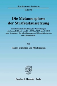 Hanns-Christian von Stockhausen analysiert die Auswirkungen der Änderungen des SexualDelBekG aus dem Jahr 1998 auf das Institut der Strafrestaussetzung, die unter dem Eindruck der Ermordung der 7-jährigen Natalie verabschiedet worden waren. Dabei geht er insbesondere der Frage nach, ob mit der Novellierung entsprechend der gesetzgeberischen Propagierung eine Klarstellung oder vielmehr eine Verschärfung der vormals geltenden Regelung intendiert war.Mit Hilfe einer umfassenden Darstellung der geschichtlichen Entwicklung von § 57 StGB weist der Autor einen zunehmenden Einfluss der Medien auf den Gesetzgeber nach. Dabei kommt er hinsichtlich der Qualität der vorgenommenen Änderungen im Speziellen und der heutigen Kriminalpolitik im Allgemeinen zu einem ernüchternden Ergebnis.Obwohl von Stockhausen die vorgenommenen Neuerungen überwiegend begrüßt, fordert er eine Ersetzung der neu in das Gesetz aufgenommenen Voraussetzung des "Sicherheitsinteresses der Allgemeinheit". Dieser ambivalente Begriff führe in der Praxis zu einer Verschärfung der Anforderungen an die Strafrestaussetzung und versperre den Blick auf die Resozialisierung als ein wichtiges Mittel zur Schaffung von Sicherheit.