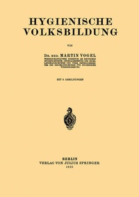 1. Einleitung.- 2. Volkstümliche Gesundheitspflege und wissenschaftliche Hygiene.- 3. Grundsätzliches zur hygienischen Volksbildung.- 4. Die Träger der hygienischen Volksbildung und ihre Schulung.- 5. Hygienischer Schulunterricht.- 6. Erwachsenenunterricht in Gesundheitspflege.- 7. Die Technik der hygienischen Volksbildungs- und Werbearbeit.- 8. Die Hilfsmittel der hygienischen Belehrung.- a) Das gesprochene Wort.- b) Das geschriebene Wort.- c) Anschauungsmittel.- 9. Die Organisation der hygienischen Volksbelehrung im Deutschen Reich.- a) Allgemeines und Grundsätzliches.- b) Ausschüsse für hygienische Volksbelehrung.- 10. Hygienische Volksbelehrung im Ausland.- Literatur.
