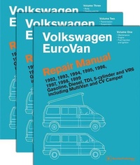 The two volumes of this Volkswagen Official Factory Repair Manual present the service and repair information for Volkswagen EuroVan, EuroVan MultiVan (including Weekender), and EuroVan CV Camper (commonly known as the Westfalia camper) models sold in the USA and Canada.